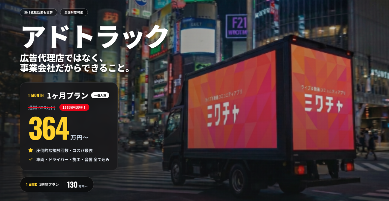 アドトラック広告の費用・料金|業界最安級130万円〜|DONUTS PROMOTION